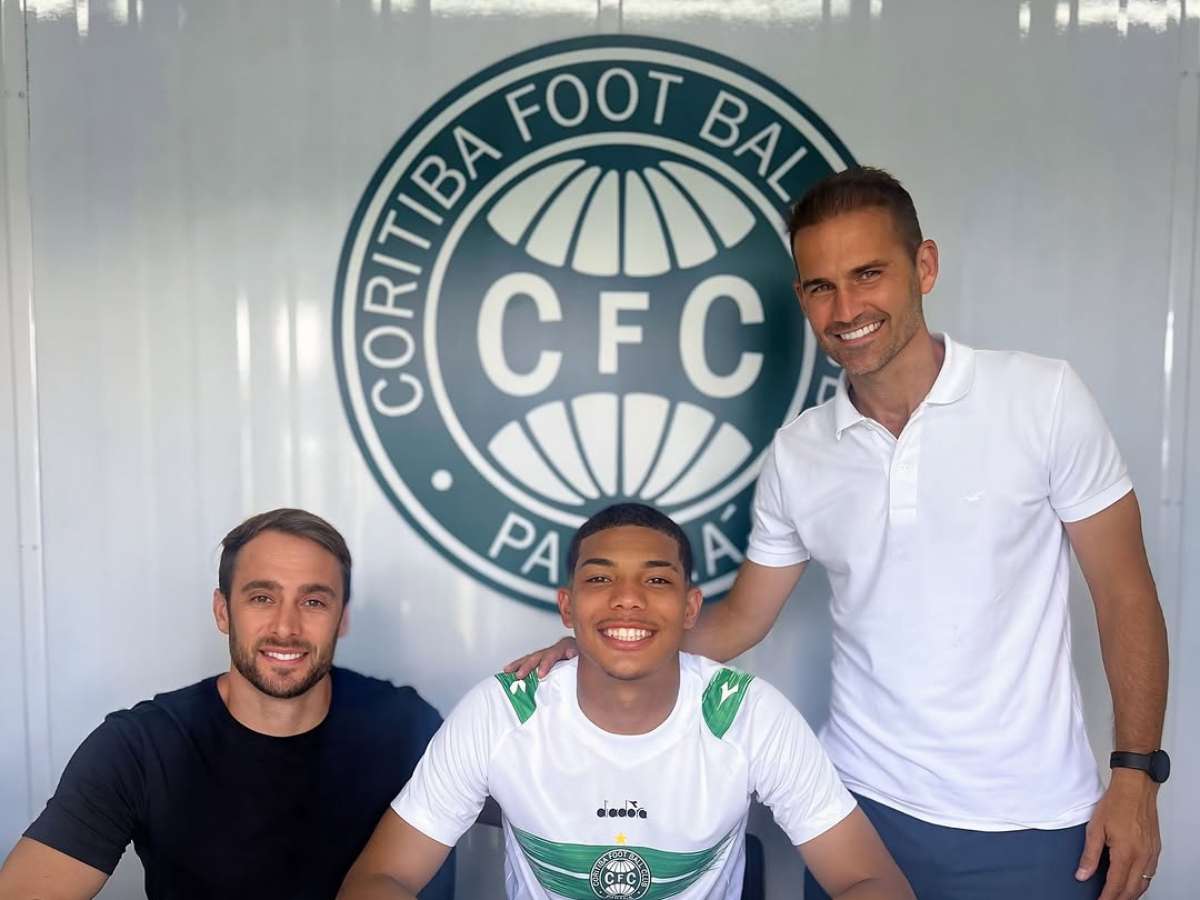 O jogador de apenas 16 anos se destacou na disputa da Copinha e assinou contrato com o Coxa válido até o final de 2026, com opção de renovação até 2029.