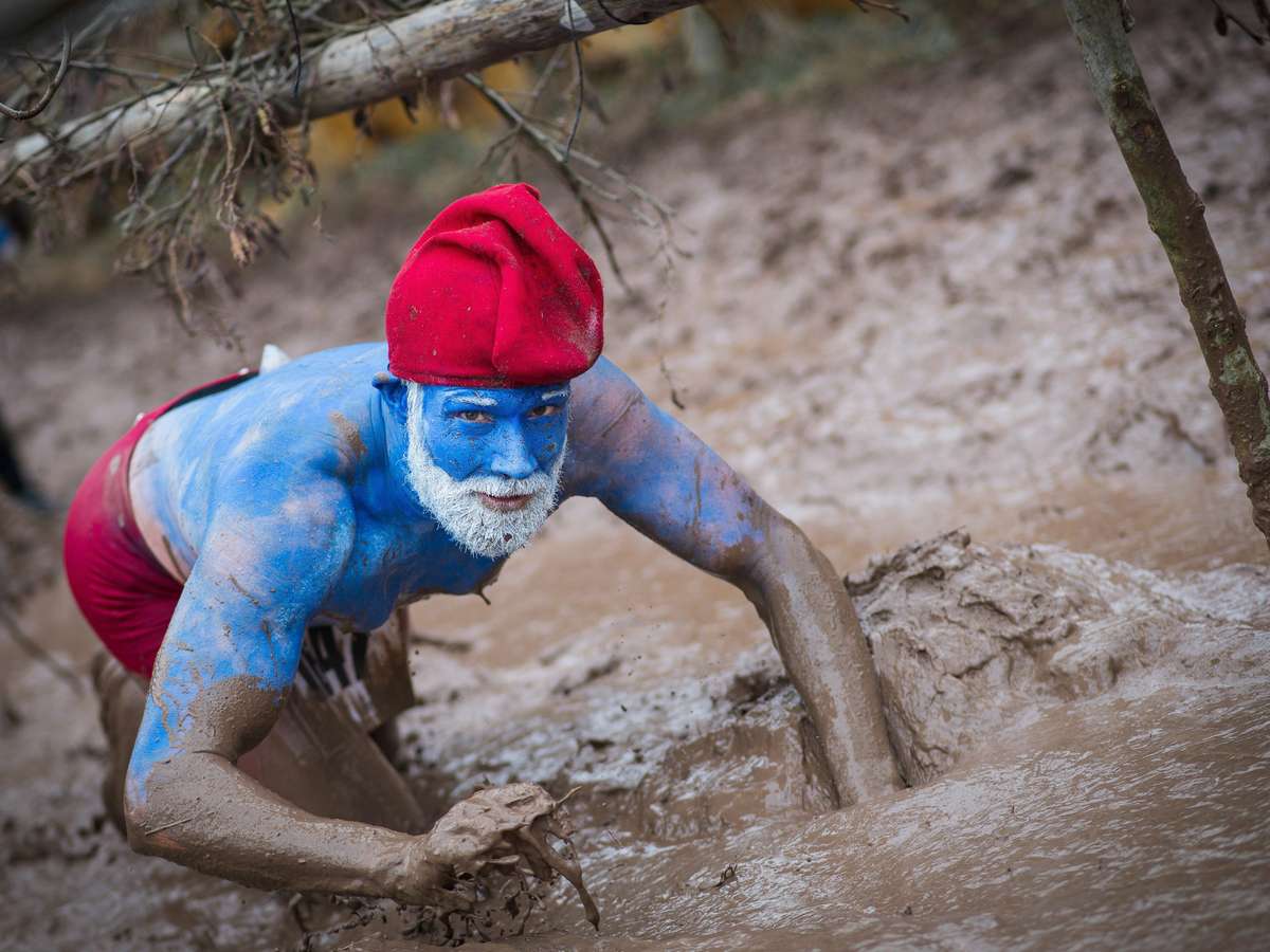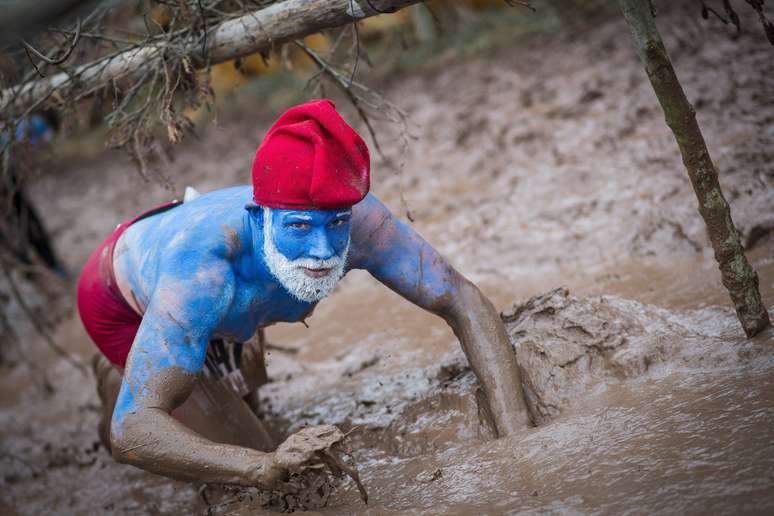Corrida na lama reúne 3 mil pessoas e "Papai Smurf" na Alemanha
