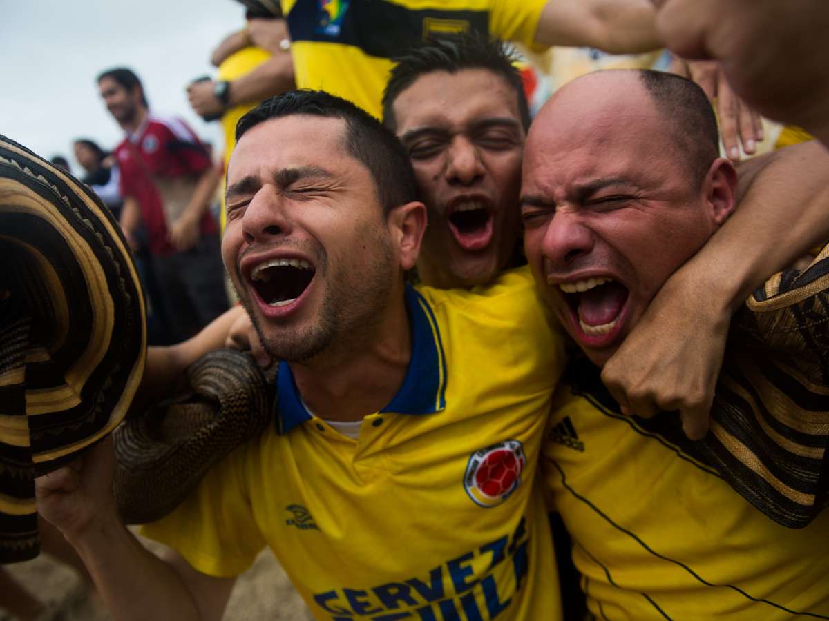 Torcedores colombianos foram às lágrimas com a vitória contra a Costa do Marfim por 2 a 1, na Copa do Mundo, diretamente da praia de Copacabana, no Rio de Janeiro. A partida aconteceu em Brasília, nesta quinta-feira