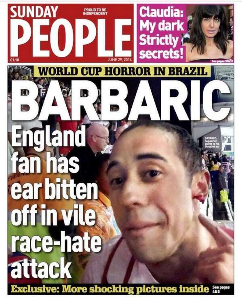 O fato foi noticiado somente neste sábado pela revista Sunday People. De acordo com a publicação, Robert Farquharson, torcedor inglês que veio ao Brasil para acompanhar a Copa do Mundo, foi atacado por um compatriota no anel superior da Arena Corinthians. Logo após a vitória uruguaia por 2 a 1, que eliminaria a seleção comandada por Roy Hodgson do Mundial, Farquharson passou a ser agredido verbalmente por um outro inglês. Vítima de racismo, ele teria ouvido: “seu negro! Você não deveria estar apoiando a Inglaterra”.