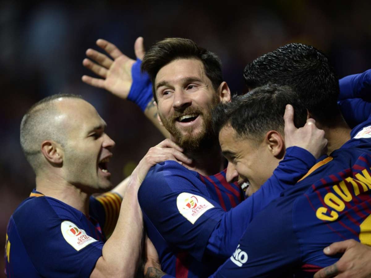 Foto com jogadores sul-americanos que atuam no Barcelona comemorando a conquista da Copa do Rei gerou debate na web por um pequeno detalhe no pé do craque argentino