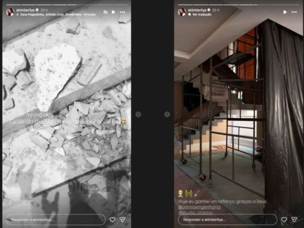 Até que compartilhou um registro em que estava coberta por sujeira e poeira de gesso.
