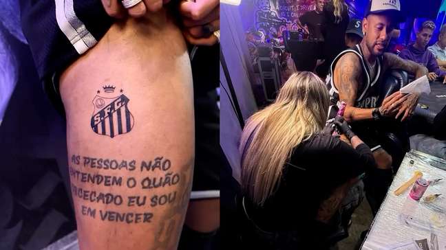 Neymar tatuou o escudo do Santos na coxa direita em homenagem ao clube, destacando sua conexão com a equipe, que foi renovada até o fim de 2025.