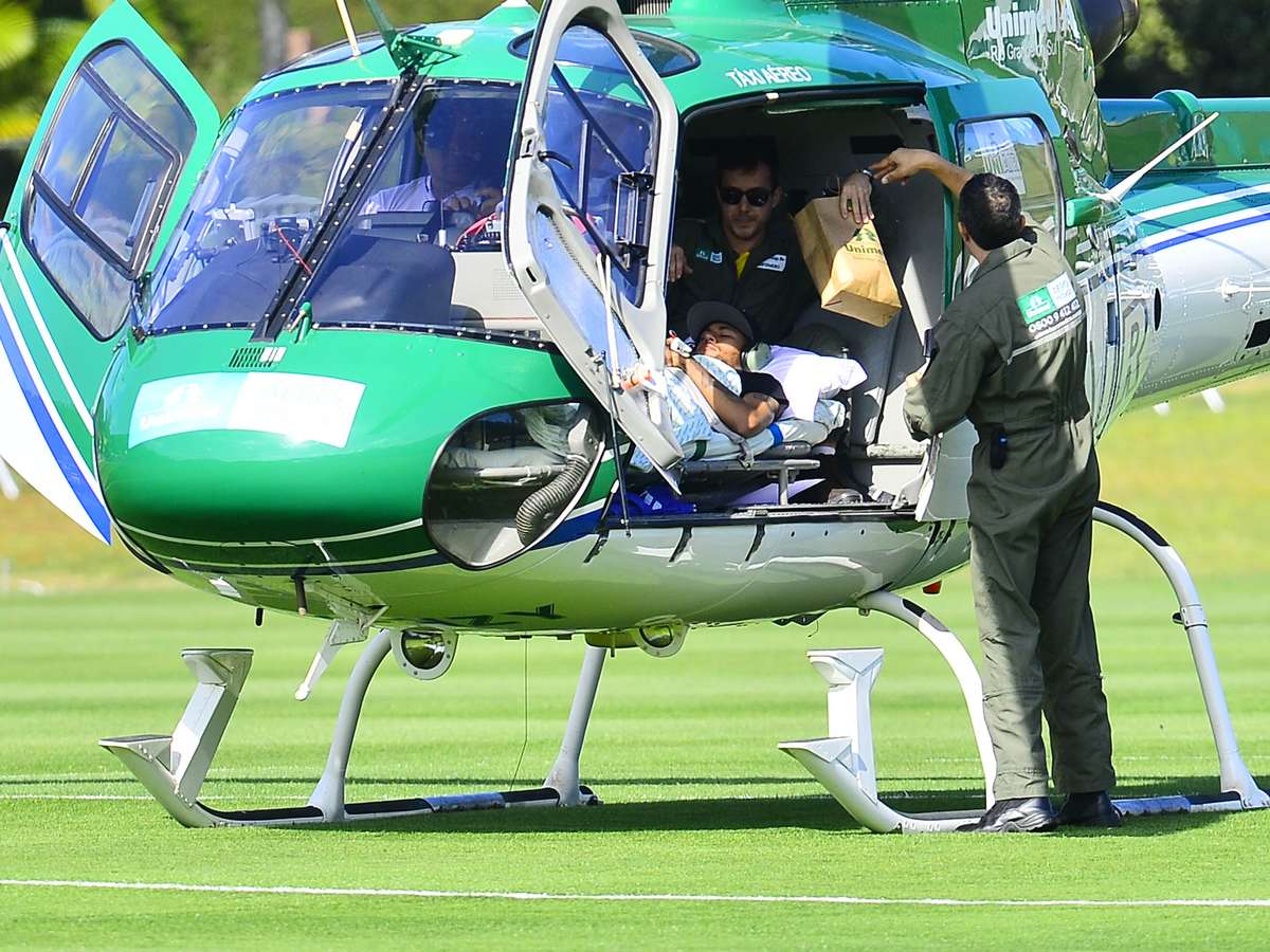 Runco disse que depois se definiu pela ida dele para Teresópolis. “Ele entrou no avião na base aérea pelo elevador de serviço, foi colocado deitado no avião, confortável com analgésico, veio de ambulância, participou do jantar, participou do café da manhã e foi transportado até o Guarujá em maca. Ele consegue dar passos, caminhar, nenhum problema neurológico e nenhum problema para seguir sua carreira como jogador ou como ser humano. Ele precisa apenas de tempo para a fratura se consolidar”, disse.