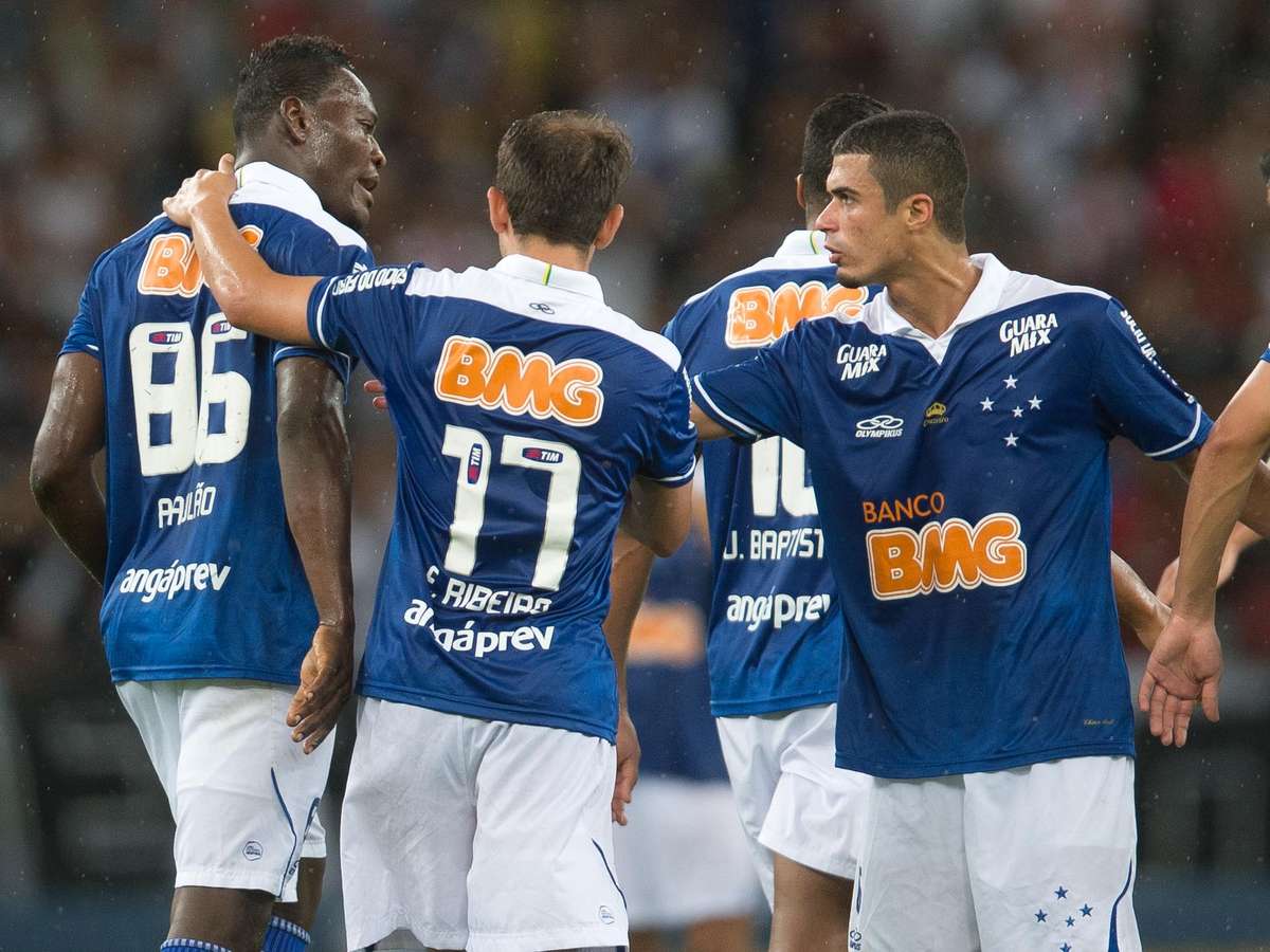 Jogadores do Cruzeiro comemoram gol em duelo disputado no Maracanã