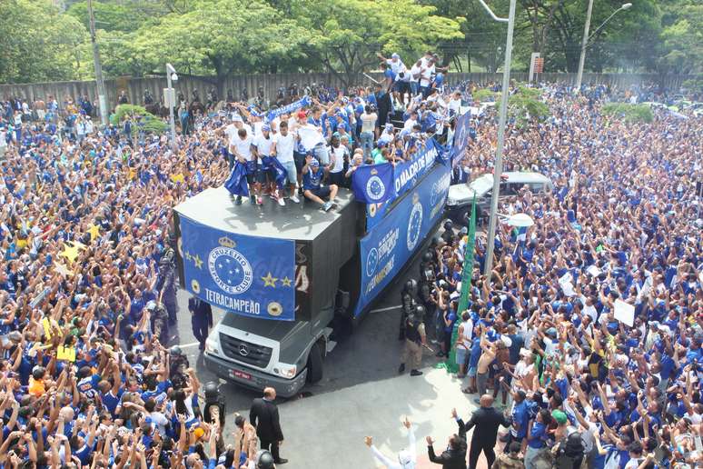 Quem achou que os torcedores se cansariam de comemorar a taça do campeonato nacional, a quarta da sua história, se enganou. Para deixar o dia mais bonito, a diretoria do Cruzeiro decidiu que as comemorações dos jogadores iria começar antes mesmo de a bola rolar. Em dois carros, um trio-elétrico e um do corpo de bombeiros, os jogadores celestes deixaram a porta da Toca da Raposa I, na orla da Lagoa da Pampulha em direção ao Mineirão, trajeto de quase 4 km.