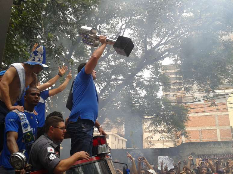 Jogadores subiram no ônibus do Cruzeiro pela manhã para saudar os torcedores