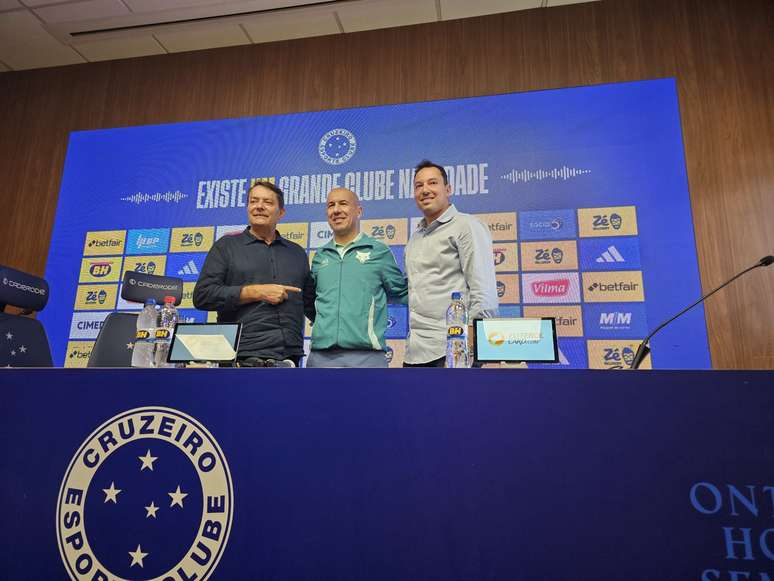 O português Leonardo Jardim deu a sua primeira coletiva como novo técnico do Cruzeiro, nesta segunda-feira (10), na Toca da Raposa. Jardim foi apresentado ao lado de Pedrinho, dono da SAF do Cruzeiro, e Pedro Júnior, diretor do Cruzeiro. Jardim falou sobre a chegada ao Brasil, intensidade do futebol brasileiro, sobre suas características e o que espera do Cruzeiro.