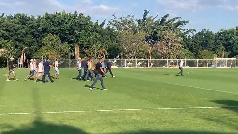 No gramado, os torcedores abordaram jogadores e membros da comissão técnica do Cruzeiro. Atletas que não estavam no campo se juntaram ao elenco, com o treinador Abel Braga, o centroavante Fred e o goleiro Fábio sendo as lideranças na conversa, acompanhadas por seguranças do clube.