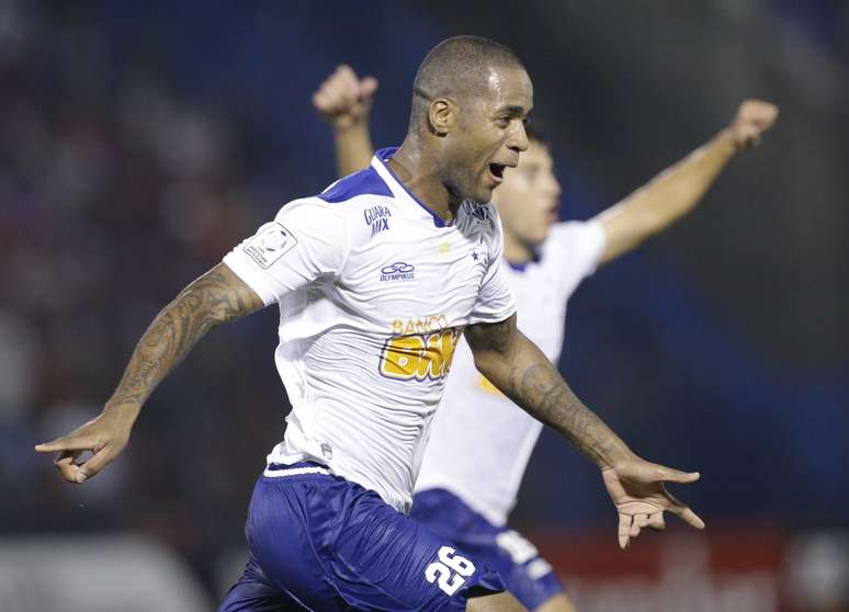 Dagoberto comemora com Samudio o segundo gol do Cruzeiro na partida