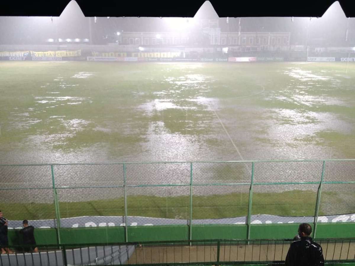 Cuiabá e Mixto se enfrentariam no domingo (4), mas por causa da forte chuva que caiu no Estádio Dutrinha, e das grandes poças de água no gramado, a partida foi adiada para esta segunda-feira (5). O jogo havia começado, mas o gramado ficou impossível de praticar o futebol. A arbitragem paralisou o embate aos 25 do primeiro tempo (0x0 no placar), e decidiu adiar.