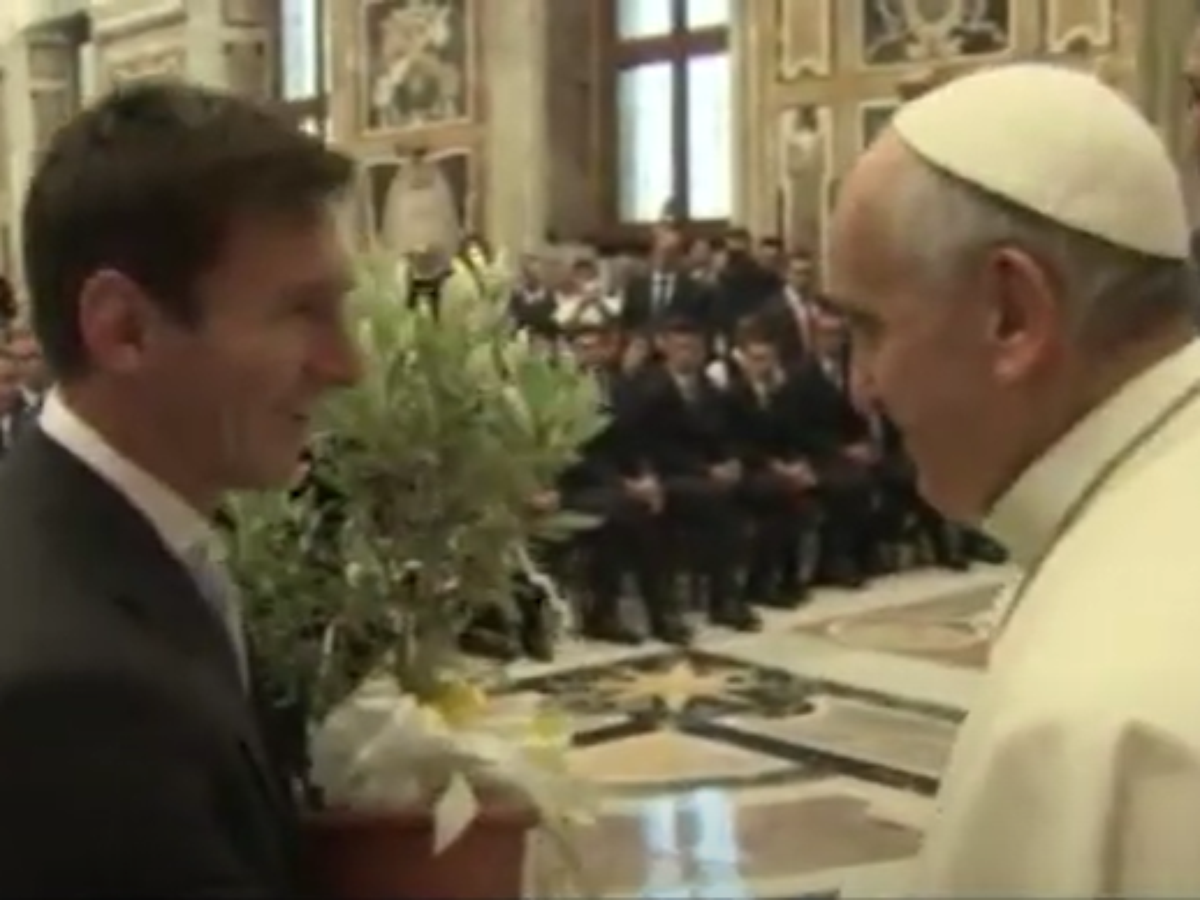 Na ocasião, o ídolo argentino e o ex-goleiro Gianluigi Buffon reverenciaram o Papa e ouviram Francisco. Messi aproveitou a oportunidade para entregar uma oliveira ao pontífice.