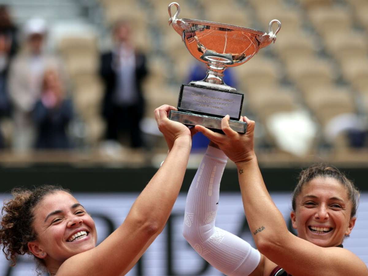 As tenistas italianas Sara Errani e Jasmine Paolini ergueram a taça neste domingo (8) como as grandes campeãs de duplas do Roland Garros em Paris. As "azzurre" bateram na final a sérvia Aleksandra Krunic e a russa naturalizada cazaque Anna Danilina por 2 sets a 1, com parciais de 6-4, 2-6 e 6-1. Este é o sexto Grand Slam de duplas de Errani e o primeiro de Paolini.