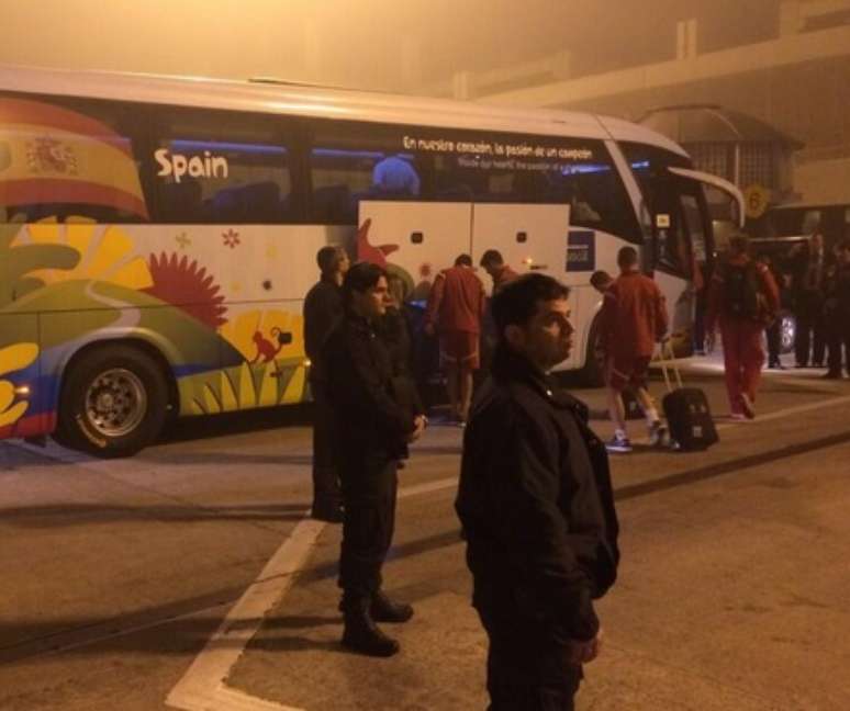 Os comandados de Vicente Del Bosque chegaram a capital paranaense perto da meia-noite e não falaram com a imprensa no Aeroporto Afonso Pena. De lá, os espanhóis foram ao CT do Caju, em um percurso tranquilo de cinquenta minutos, com a presença e escolta da Polícia Rodoviária Federal, a Guarda Municipal e a Setran.