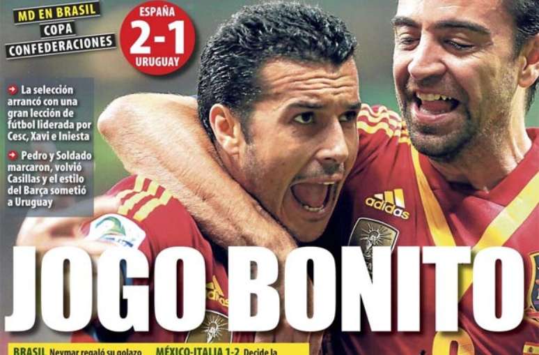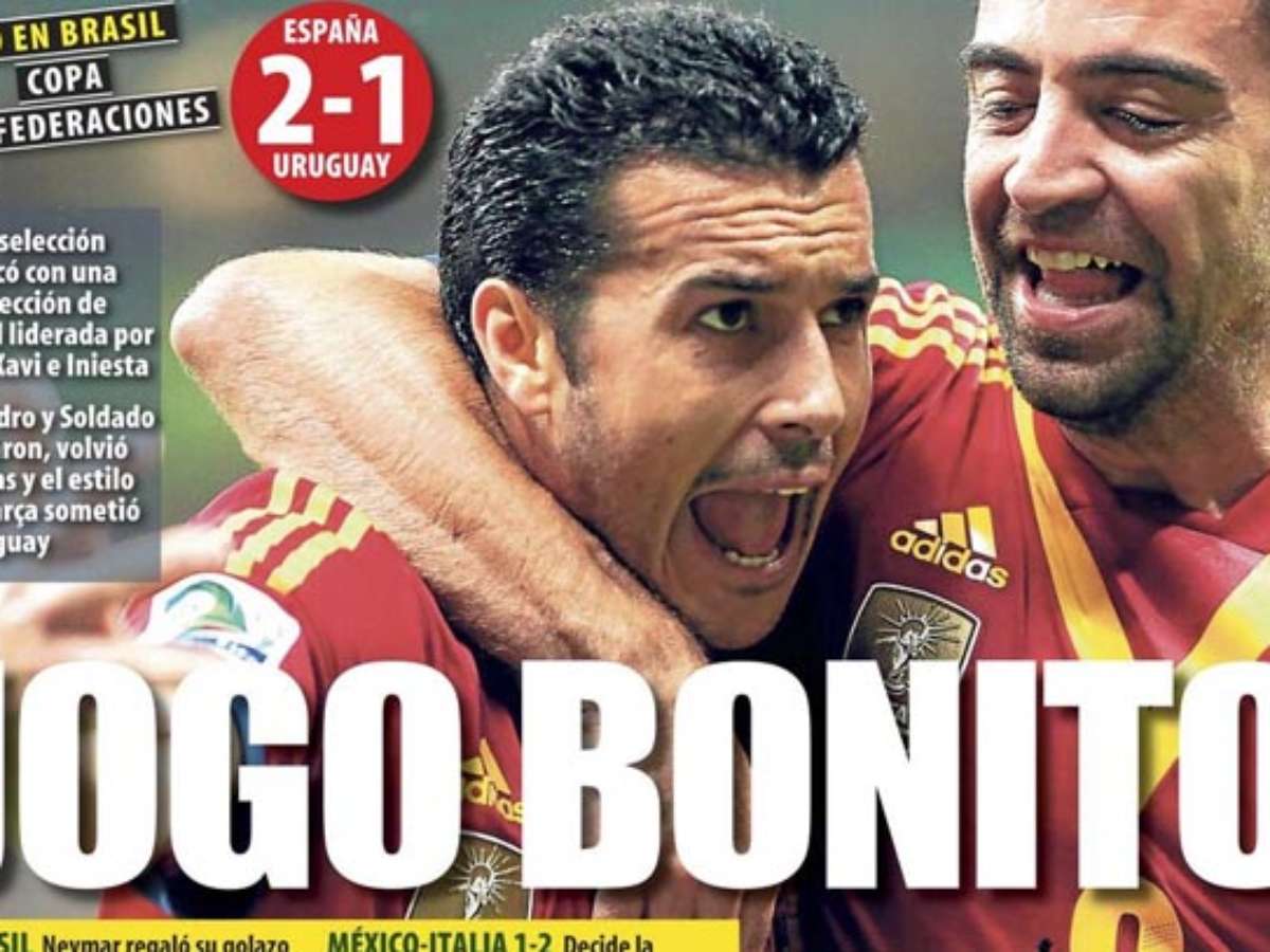Os espanhóis se empolgaram com a estreia brilhante da seleção espanhola na Copa das Confederações. A vitória por 2 a 1 foi tratada pelos jornais de Madri e Barcelona como uma aula de futebol. Dois deles inclusive se arriscaram no português para definir a atuação da Espanha com a expressão "jogo bonito".