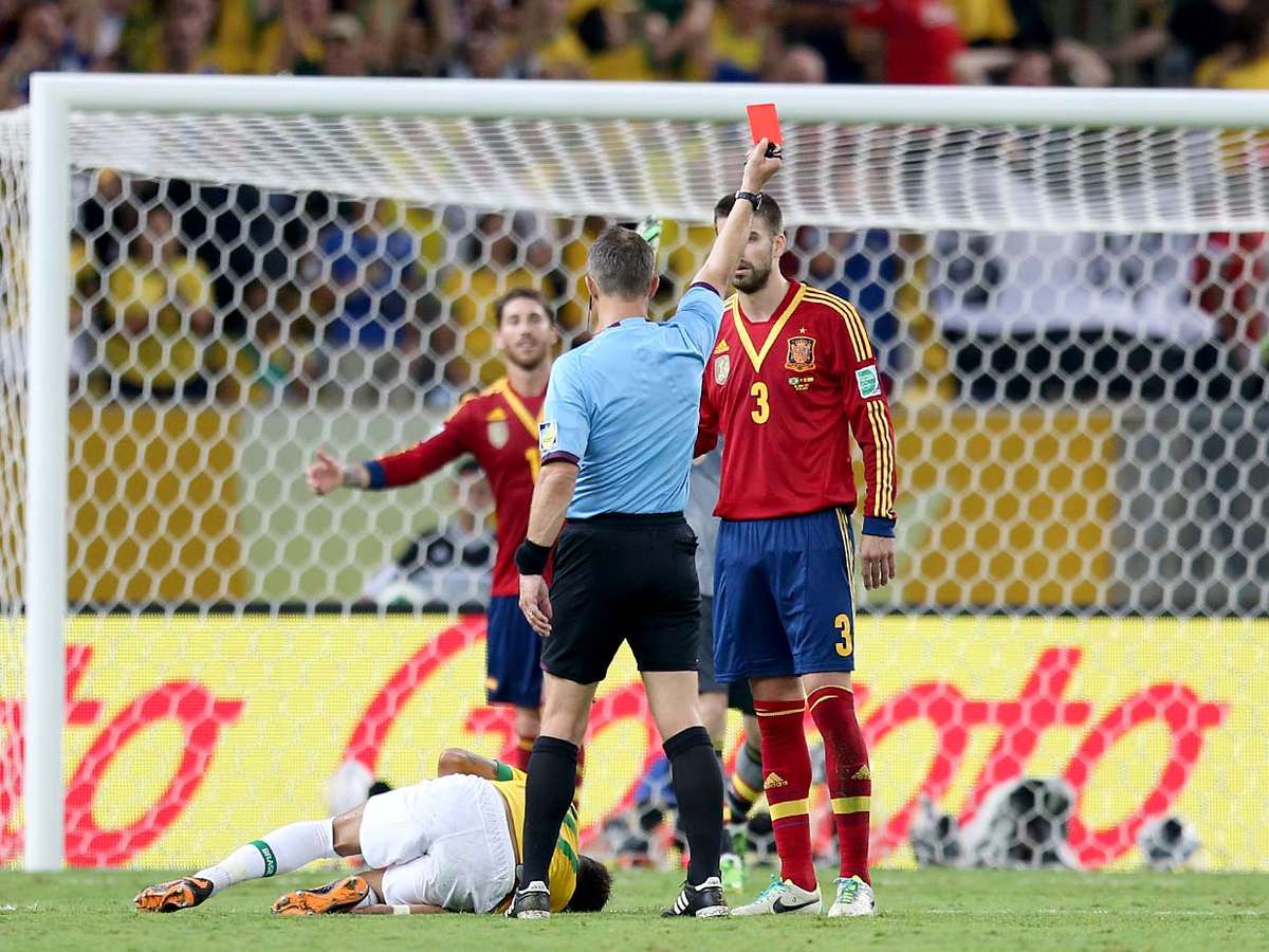 O árbitro expulsou Piqué depois do zagueiro espanhol cometer a falta em Neymar