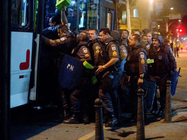“Faz 20 dias que a gente trabalha sem parar. É um turno de 24 horas, aí tem que fazer o bico de segurança na folga e a folga no dia seguinte é cassada por causa de tudo que está acontecendo. Está f...”, disse um PM que pediu para não ser identificado, depois que os ânimos do protesto do Maracanã já tinham se acalmado.