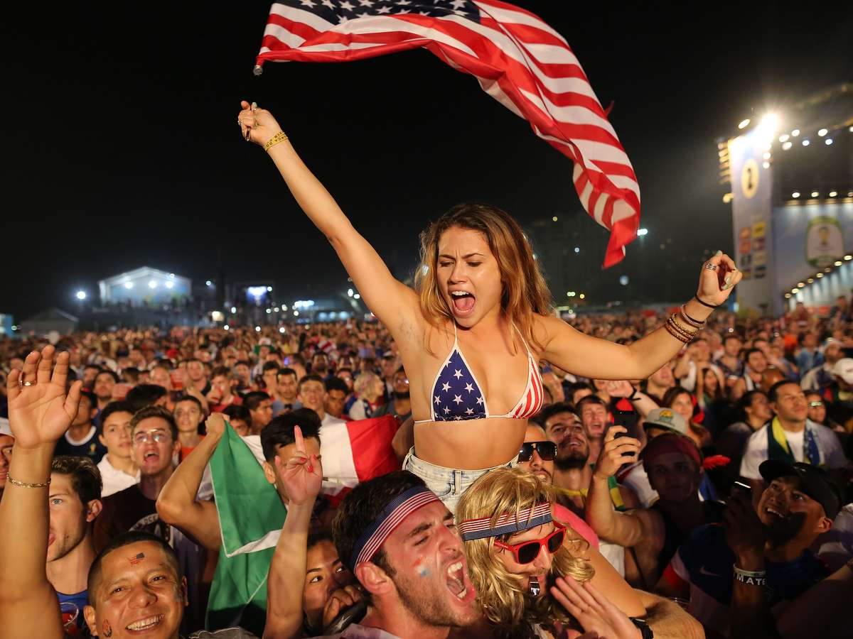 Torcedores dos Estados Unidos marcaram presença na Fifa Fan Fest, na praia de Copacabana, no Rio, para ver a vitória da seleção contra Gana por 2 a 1 na noite desta segunda-feira; jogo ocorreu na Arena das Dunas, em Natal, e valeu pelo Grupo G da Copa.