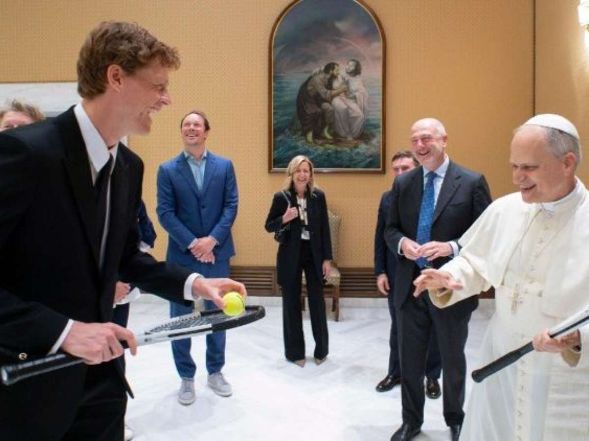 Sinner também presentou Leão XIV com uma raquete de tênis e convidou o líder da Igreja Católica a rebater algumas bolas.