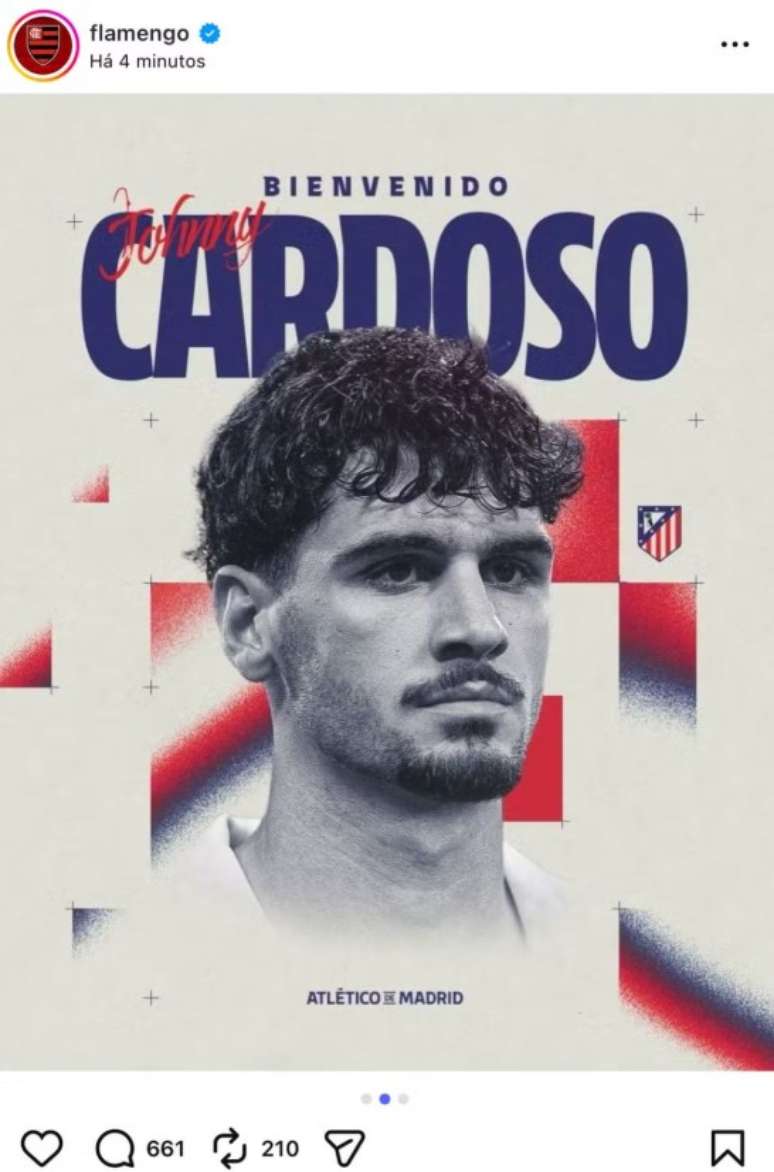 O ex-volante do Internacional Johnny Cardoso, atualmente no Atlético de Madrid, virou um dos assuntos mais comentados nas redes sociais após ser, por engano, "anunciado" pelo Flamengo nos perfis oficiais do clube carioca.