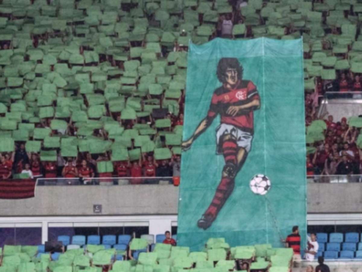 Torcedores 'reproduziram' gol de falta de Zico, contra o Cobreloa, em 81 e depois exibiram a frase 'seremos campeões'. Rivais tiraram sarro e rubro-negros elogiaram na web