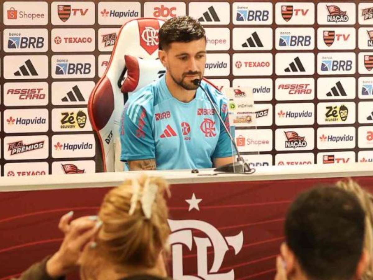O meia Arrascaeta concedeu entrevista coletiva nesta sexta-feira (15) e reforçou que o elenco do Flamengo está blindado contra 'problemas externos'. O uruguaio, aliás, falou que o Rubro-Negro é o seu maior adversário.