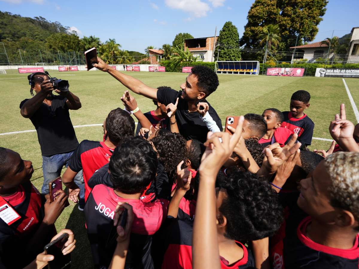 Danilo, craque do Flamengo, faz visita surpresa no Projeto Sonho de Bola, que dará oportunidade a jovem de comunidade Carioca no time Rubro-Negro