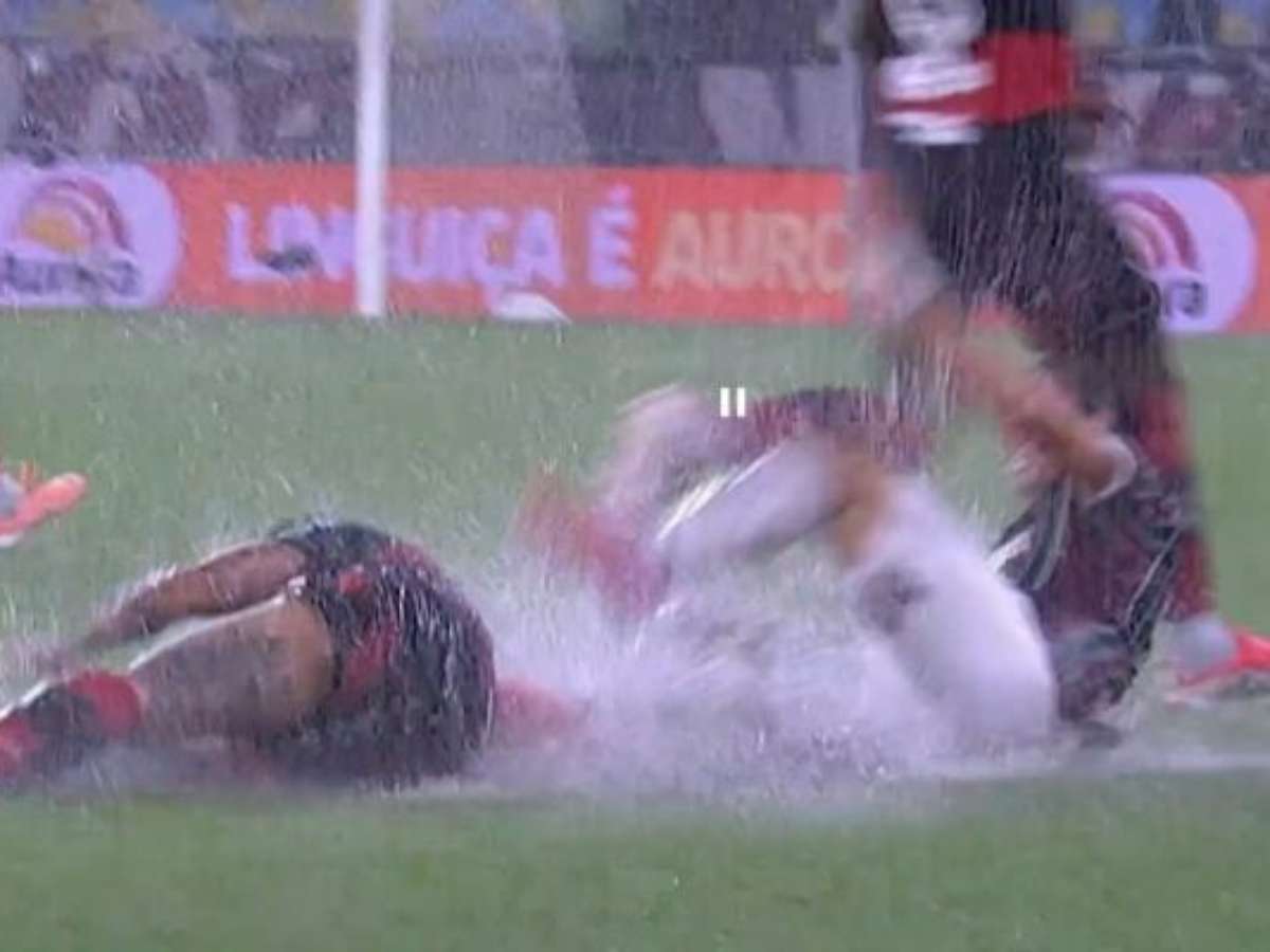 Aos nove minutos, o duelo no Maracanã sofreu interrupção até que a tempestade diminuísse. Jogo parou por 40 minutos
