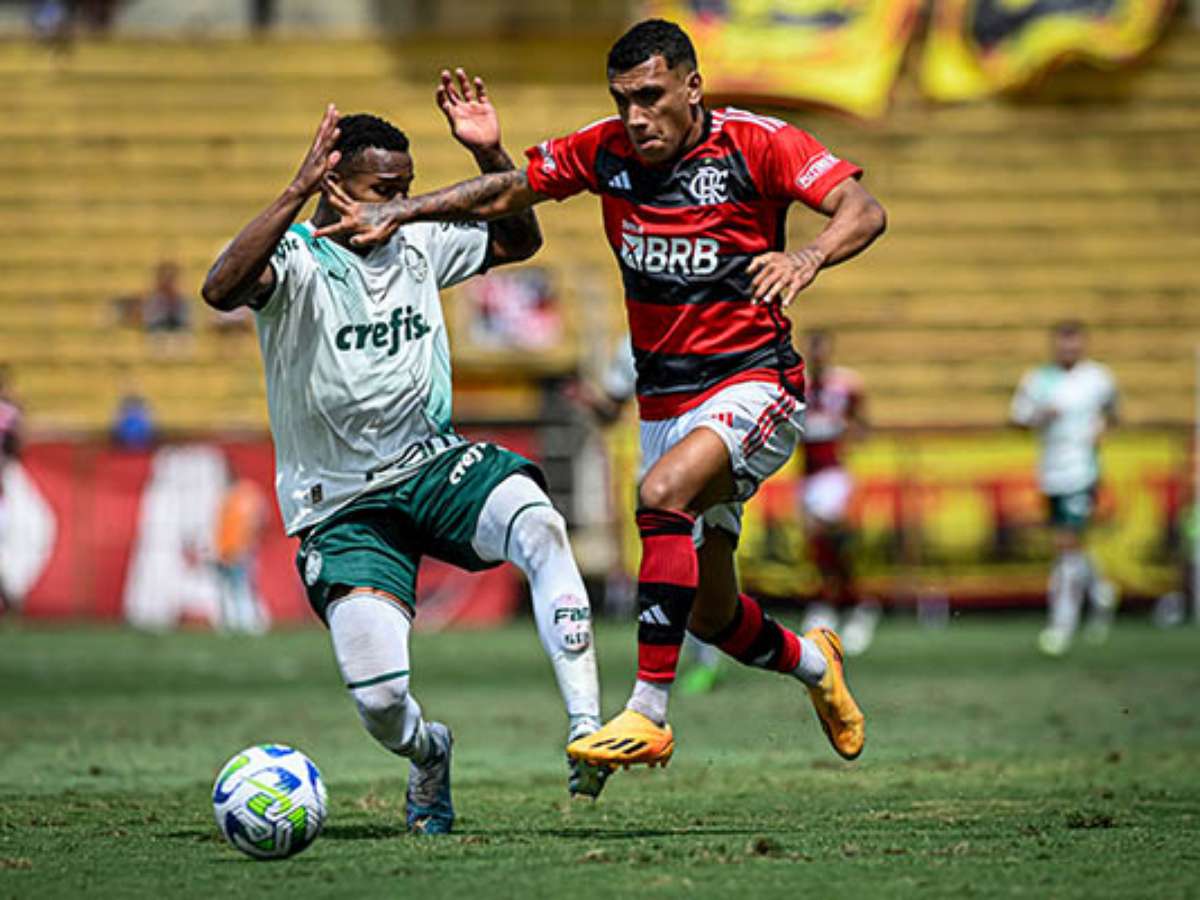 Já na etapa final, o jogo se apresentou muito parecido com o primeiro tempo. Afinal, o Palmeiras começou pressionando e teve grande chance aos três minutos. Kevin arriscou de fora da área, obrigando Dyogo Alves a fazer a defesa. O rebote caiu nos pés de Estevão, que se empolgou e isolou. Dois minutos mais tarde, o Flamengo deu a resposta. Em cobrança de falta, a bola caiu nos pés de Werton, que soltou uma bomba e obrigou o goleiro Kaique a fazer uma nova grande defesa.