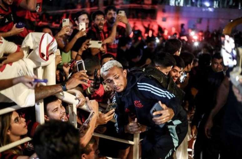 O ônibus subiu a calçada e se aproximou um pouco mais da entrada e, então, os atletas aparecerem para o público, segundo o portal "ge". Entre os jogadores, Bruno Henrique, Léo Pereira, Luiz Araújo, Wesley, Ayrton Lucas e Juninho pararam no caminho e atenderam aos pedidos de fotos.
