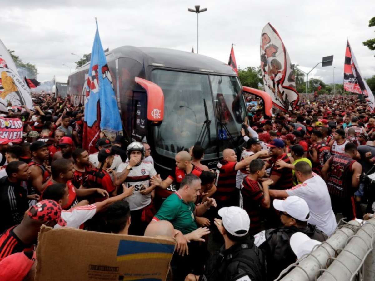 Se milhares de torcedores ficavam para trás, havia outra multidão, maior ainda, à entrada do portão de cargas do Galeão, local por onde o ônibus ingressou no aeroporto. Com a chegada dos jogadores, sob vários cânticos de arquibancada, houve correria e surgiram bandeirões de mastro, o que não é mais permitido nos estádios. Fogos de artifício e sinais luminosos eram vendidos por ambulantes que faturavam graças à empolgação dos torcedores.