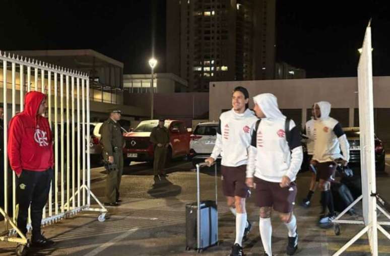 A delegação do Flamengo chegou na noite deste domingo à cidade que vai sediar o jogo contra o Palestino pela Libertadores