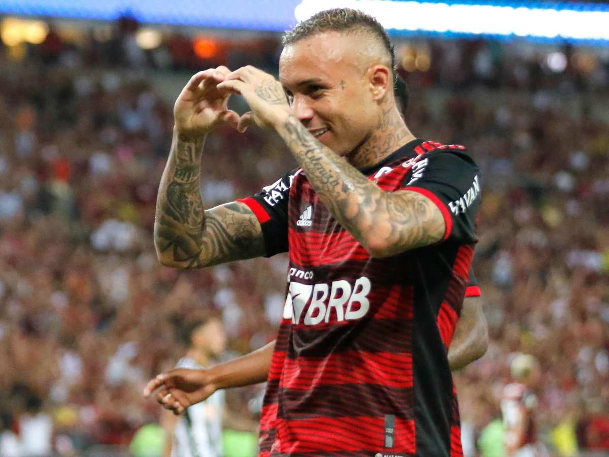 E foi justamente quando a equipe mineira crescia em campo que o Flamengo abriu o placar. Aos 37, Fabrício Bruno levantou na área, de longe, e Everton Cebolinha ganhou de Guga na bola aérea e escorou de cabeça para as redes. Na sequência, o atacante quase anotou o segundo, em chute de longe. Everson fez boa defesa.