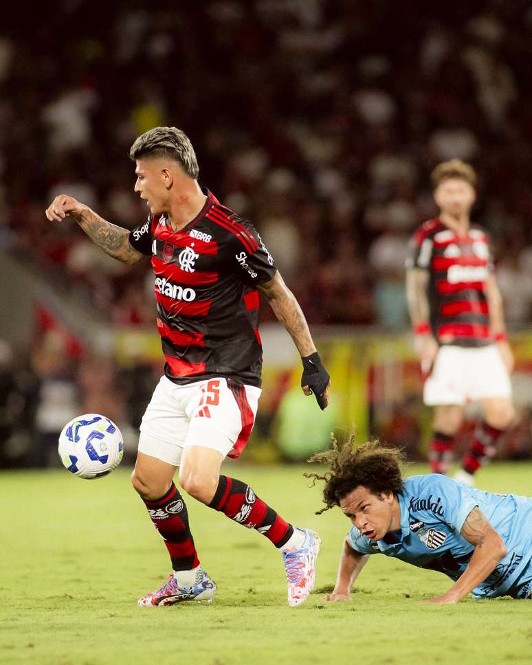 O Flamengo vence o Santos por 2 a 0 e segue na caça do Palmeiras pela primeira colocação. Com gols de Léo Pereira e Carrascal, o Rubro-Negro alcançou a mesma quantidade de pontos do Palmeiras.