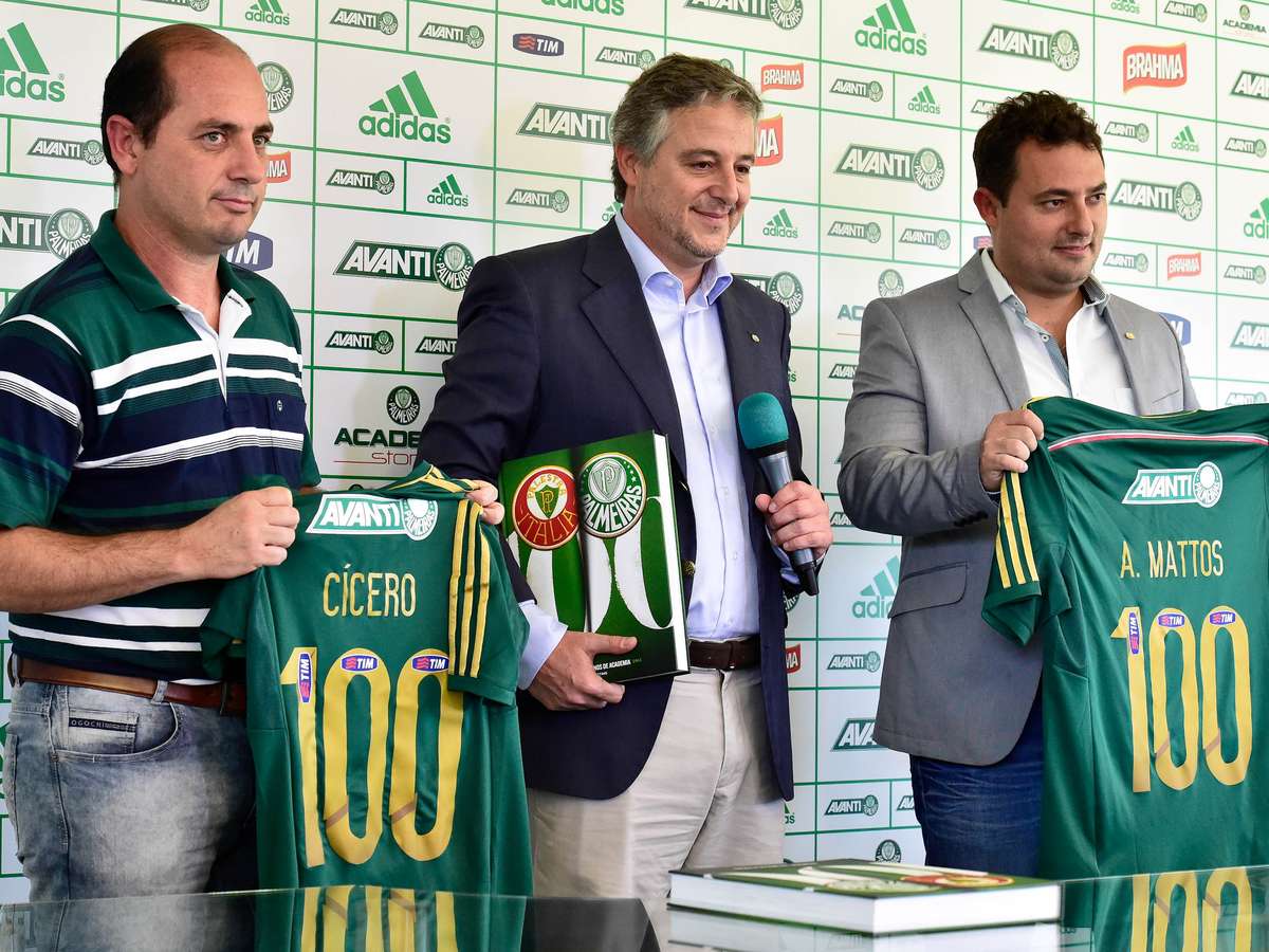 A sala de imprensa na Academia do Palmeiras estava lotada de jornalistas. Mais de dez câmeras foram preparadas para transmissões. O presidente do clube, Paulo Nobre, entrou no local com duas camisetas na mão, ambas personalizadas. Parecia a apresentação de um grande reforço, um nome de peso, uma contratação milionária. Mas aquelas camisetas não tinham os nomes de jogadores de futebol. Nelas estavam os nomes de Cícero Souza (gerente de futebol) e Alexandre Mattos (diretor), os novos cartolas palmeirenses. E na prática eles foram tratados como reforços, tanto que Nobre repetiu o mesmo ritual que faz com todos atletas recém-contratados: pediu para que eles honrassem a camisa e entregou um livro do centenário alviverde. Depois o presidente saiu da sala de imprensa e deixou Mattos, o astro principal desta quarta-feira, brilhar sozinho.