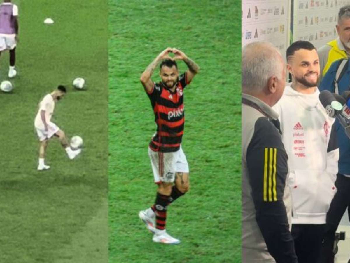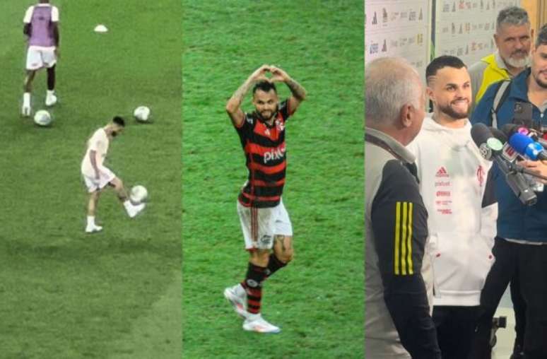 Os rubro-negros estavam ansiosos para ver o atacante pisar novamente no gramado do Maracanã. O sentimento, aliás, era o mesmo por parte do jogador. Logo que entrou para o trabalho de aquecimento, o atacante fez um show com a bola no pé, com direito a embaixadinha e bola atrás do pescoço.