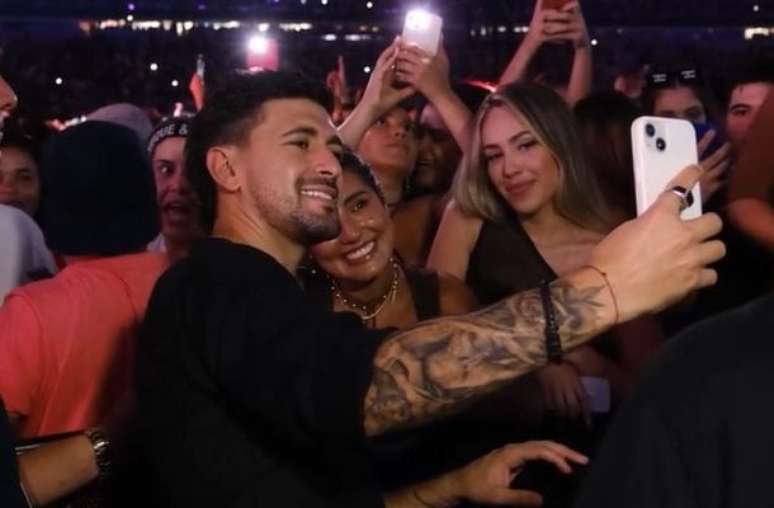 Declaradamente fã de sertanejo, o jogador aproveitou um raro momento fora da rotina intensa como atleta e pai para curtir o show ao lado de Camila Bastiani. O camisa 10 do Flamengo circulou pelo estádio com tranquilidade, marcou presença no camarim e distribuiu autógrafos durante o encontro com Henrique & Juliano.