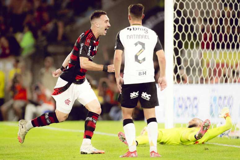 Flamengo e Atlético disputaram um primeiro tempo equilibrado. Mas que foi prejudicado por uma arbitragem muito confusa, que deixou de marcar um pênalti de Gabriel Menino em Arrascaeta nos acréscimos. Um empurrão evidente por trás. O visitante vem de atuações ruins, mas cresce contra o Rubro-Negro, por conta da rivalidade. Dessa forma, transformou o que não fez nos últimos tempos numa partida convincente, na marcação e no jogo ofensivo. O Atlético deixou de ser eliminado por um triz pelo colombiano Bucaramanga dentro da Arena MRV, cujo primeiro campeão oficial, da Copa do Brasil de 2024, é o Flamengo.