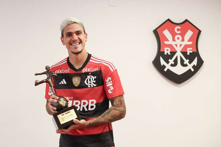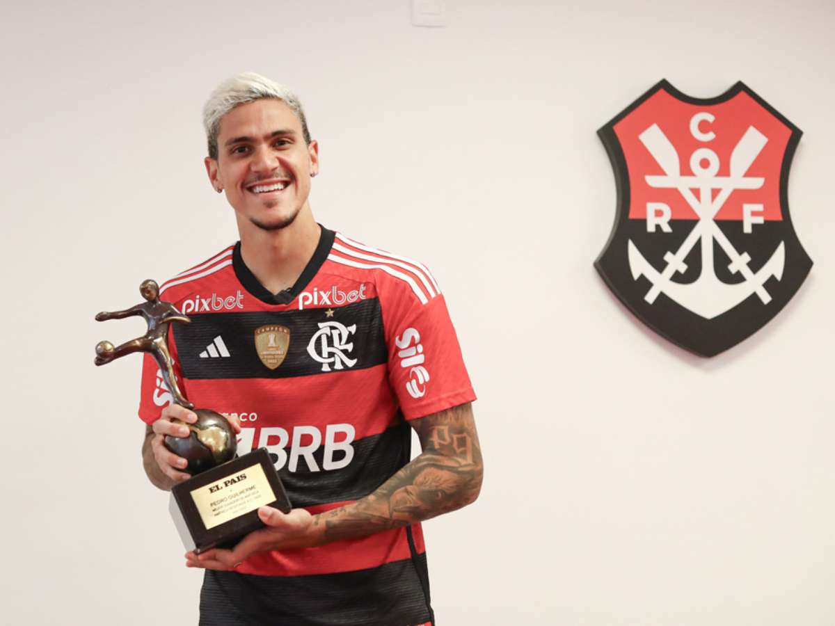 Melhor jogador da América em 2022, Pedro recebeu a premiação Rei da América do jornal uruguaio "El País" na manhã desta terça-feira (4), no Ninho do Urubu. O atacante teve o reconhecimento após conquistar a Copa do Brasil e a Copa Libertadores do ano passado. Aliás, pelo torneio sul-americano, foi o artilheiro, com 12 gols em 13 jogos, sendo fundamental no título rubro-negro.