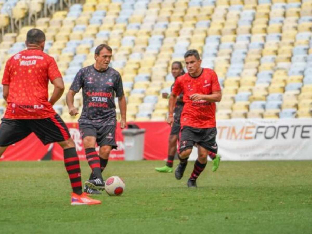 Ex-jogadores participam de evento organizado pela Escola Flamengo, realizado no Maracanã; se liga nos gols dos ídolos!