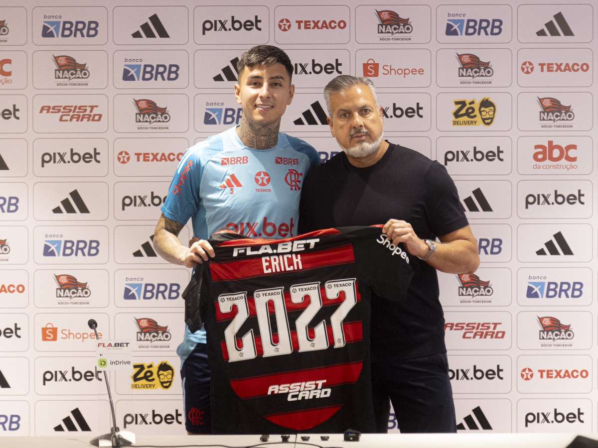 O Flamengo oficializou, nesta sexta-feira, a renovação de contrato do volante Erick Pulgar até o fim de 2027. O acordo foi fechado pela manhã no Ninho do Urubu, em reunião com o empresário chileno Fernando Felicevich, e finalizado durante a tarde com a assinatura do novo vínculo. Antes da entrevista coletiva do zagueiro Léo Pereira, o diretor de futebol José Boto fez um pronunciamento confirmando a permanência do jogador.