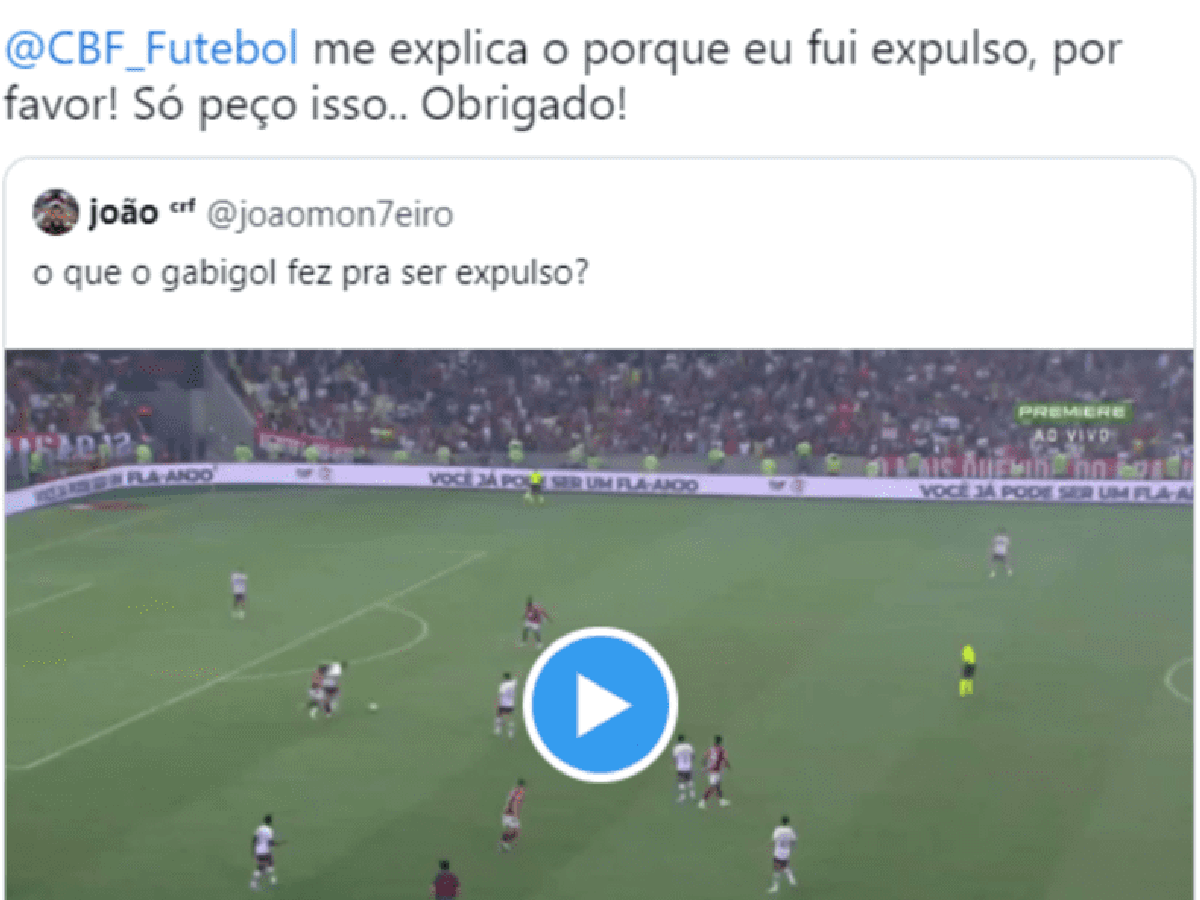 "CBF, me explique o porquê de eu ter sido expulso, por favor! Só peço isso…Obrigado!"