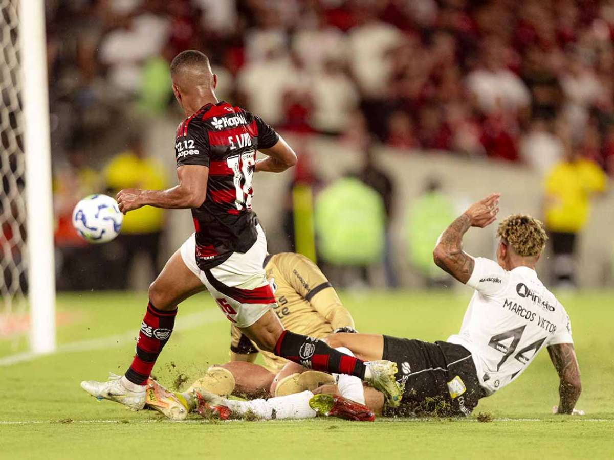 O jogo começou conforme a previsão, ou seja, o Flamengo com a bola e o Ceará completamente fechado, na esperança de acertar um contra-ataque fatal. O Rubro-Negro trocava muitos passes, mas não ameaçava, pois não encontrava a fórmula para superar a retranca, que parecia instransponível. Era necessário forçar efetivamente, para cansar o adversário, que brigava contra o rebaixamento. Aos 25 minutos, não havia acontecido nada de interessante, tanto que Jorginho tentou de fora da área, sem sucesso. Aos 36, Carrascal deixou Samuel Lino à vontade, para bater na saída de Bruno Ferreira: 1 a 0. Mas o Ceará não abriu. E as dificuldades prosseguiram, pois além do ferrolho, o visitante continuava apostando numa saída rápida e eficiente.