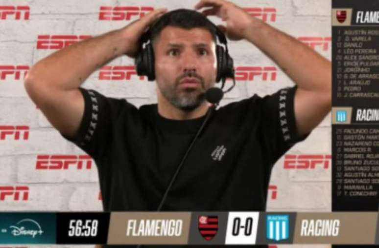 Sergio Agüero acompanha Flamengo x Racing ao vivo e viraliza com gol anulado; vídeo