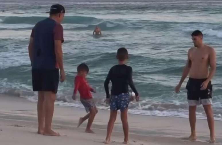 Ao lado de seu filho e auxiliar Matheus Bachi, Tite, técnico do Flamengo, aproveitou a folga na manhã desta quinta-feira (4) para ir à praia da Barra com a família. Com boné para trás, o treinador jogou "altinha" com os seus netos Leonardo e Lucca.