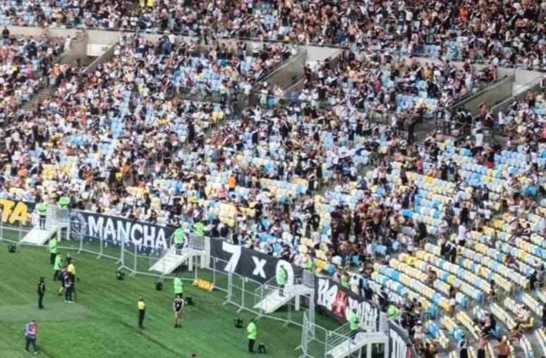 A torcida do Vasco provocou o Flamengo, neste domingo (21), no Maracanã. Afinal, os cruz-maltinos levaram uma faixa com alusão a goleada por 7 a 0 no Carioca de 1931, a maior vitória da história do "Clássico dos Milhões".
