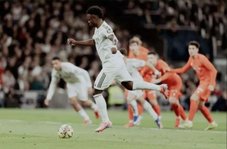 Vini Jr. converteu dois pênaltis e conduziu o Real Madrid à vitória por 4 a 1 sobre a Real Sociedad, pela LaLiga. Acontece que, em uma das cobranças, o craque merengue se utilizou de uma marca que o torcedor do Flamengo reconheceu de imediato: com o "pulinho" de Jorginho. Aliás, o próprio atacante fez questão de mencionar o volante rubro-negro após a partida.