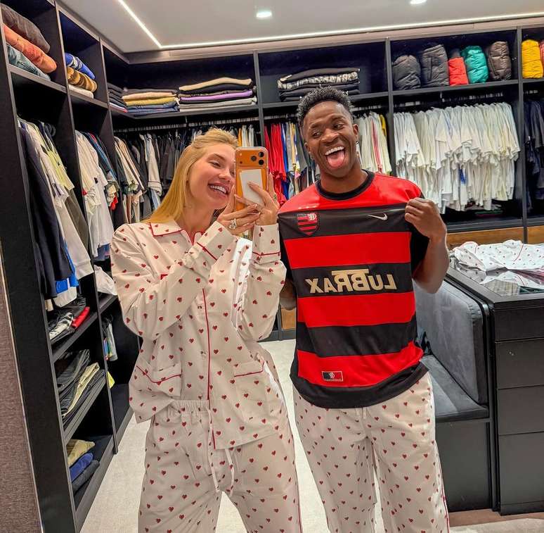 Uma publicação de Virginia ao lado de Vinícius Júnior movimentou as redes sociais neste fim de semana. O atacante do Real Madrid apareceu usando a camisa do Flamengo enquanto posava com pijama combinando com a influenciadora, detalhe que roubou a cena entre os torcedores.