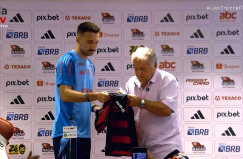 Parecia mais uma entrevista normal para o zagueiro Léo Ortiz, nesta quinta-feira (20), no Ninho do Urubu. No entanto, o zagueiro do Flamengo ganhou uma surpresa de Zico, que "invadiu" a sala de coletiva do CT. O Galinho, por sua vez, entregou uma camisa com direito a autógrafo. O defensor também presenteou o ídolo do clube com a camisa de sua estreia pelo clube, em março do ano passado.