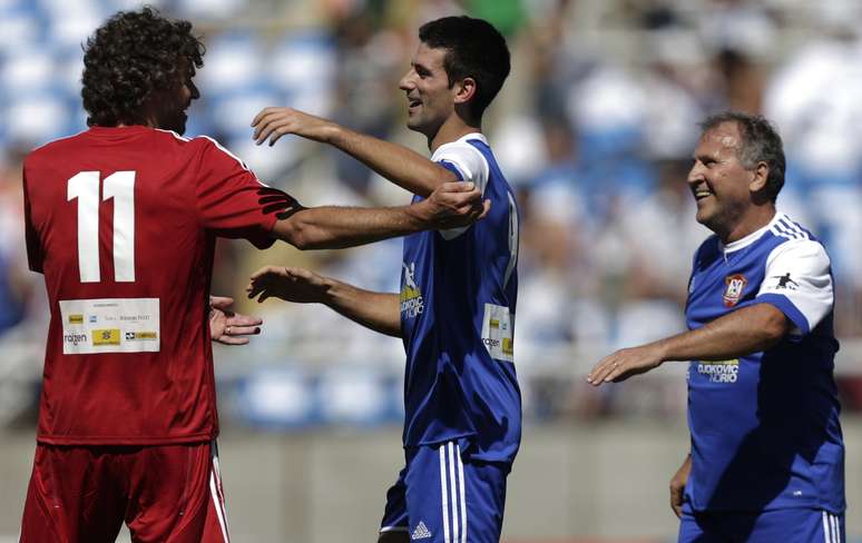 “Estou muito emocionado. Eles pediram para eu fazer gol e fiz logo dois. Então, reencontrar a torcida e ainda balançando as redes, não tem nem como explicar”, disse o ex-jogador, que chegou a ofuscar Guga e Djokovic com os gritos da torcida. A partida amistosa, que contou com um gol de pênalti de cada um dos tenistas protagonistas, terminou empatada por 3 a 3.